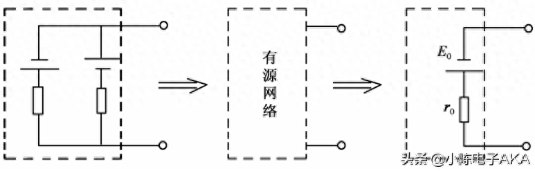 任何线性有源二端网络都可以根据戴维宁定理化简为一个电压源,如下图,戴维宁定理的内容:一个有源二端网络可以用一个等效电源来代替。