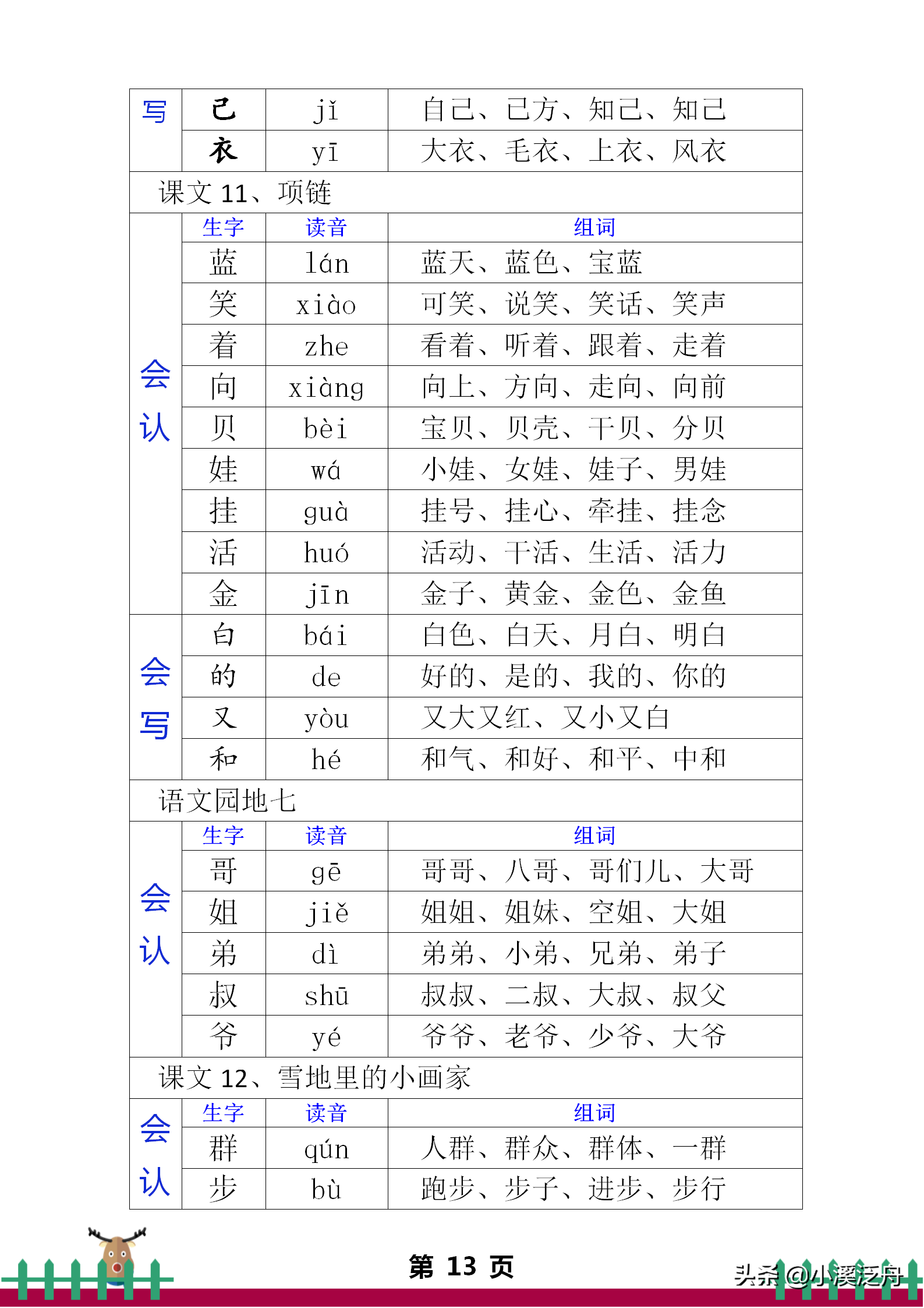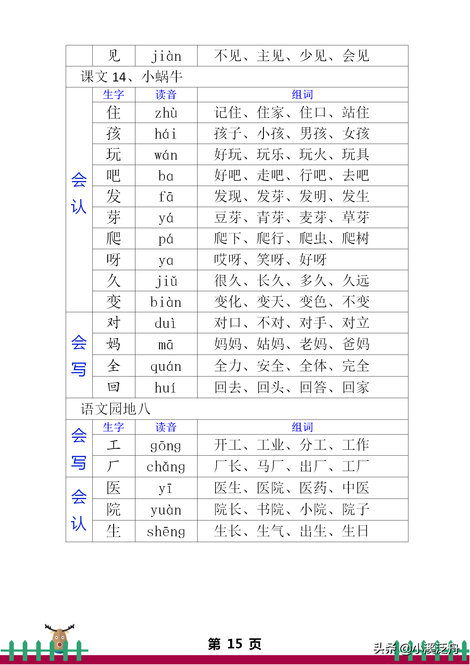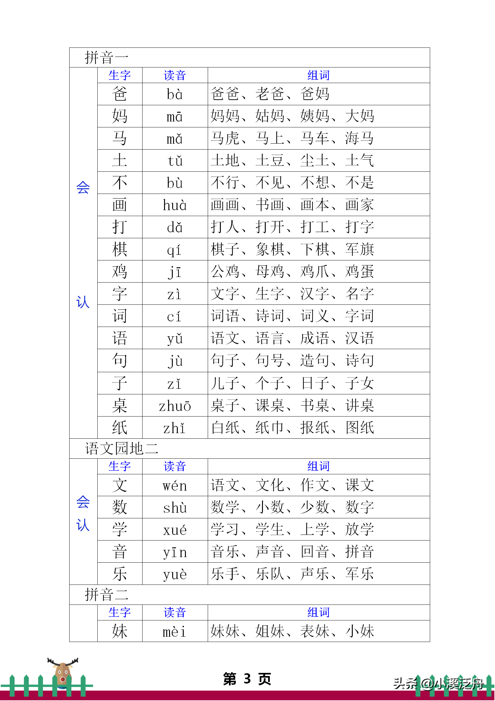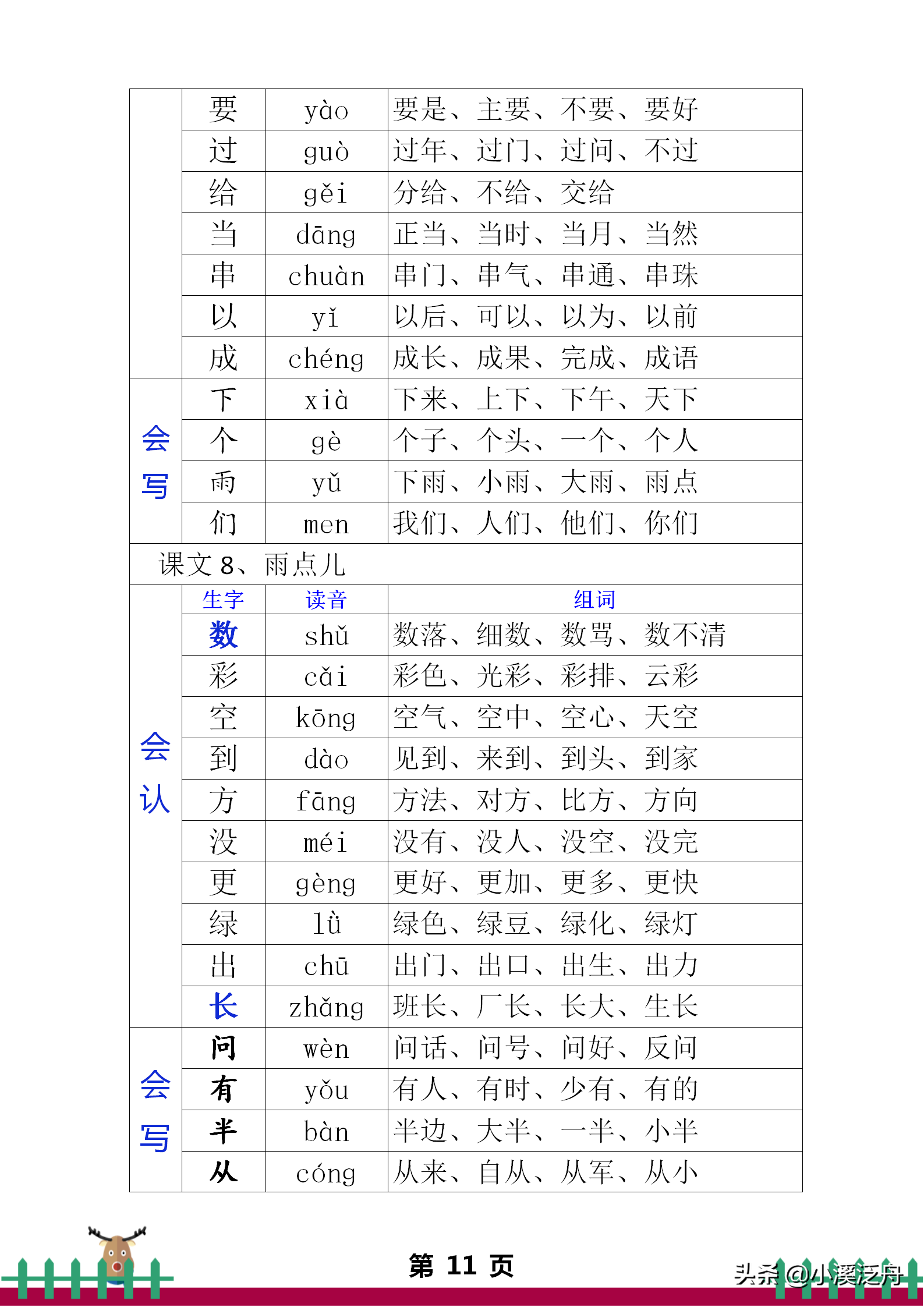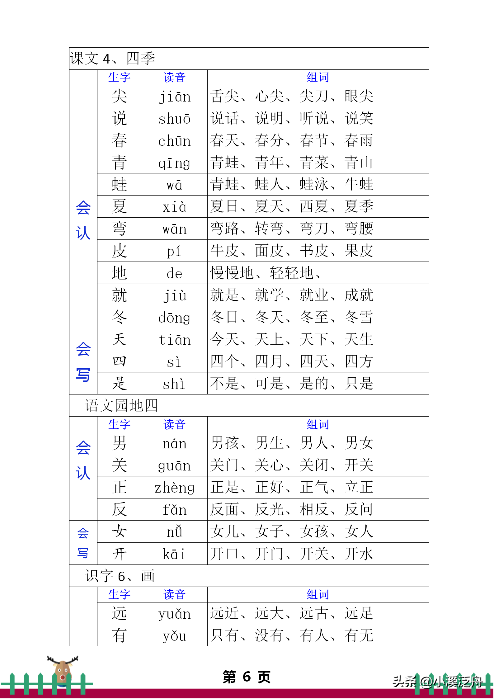但是对于刚升入一年级的小朋友来说,就算教会他查字典,他也可能搞不清楚什么是词语!于是,我就整理了这份词语表。