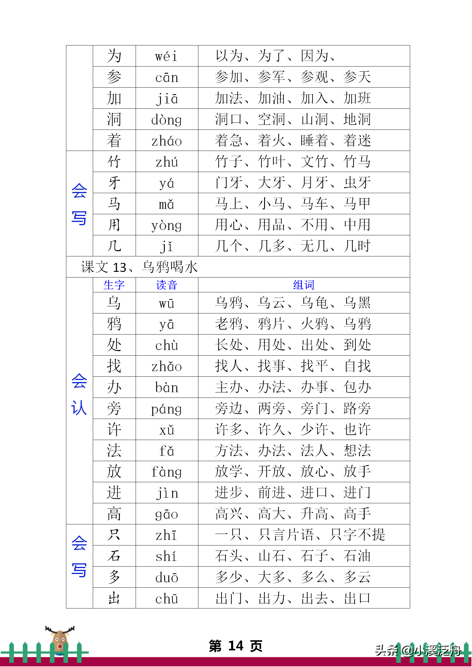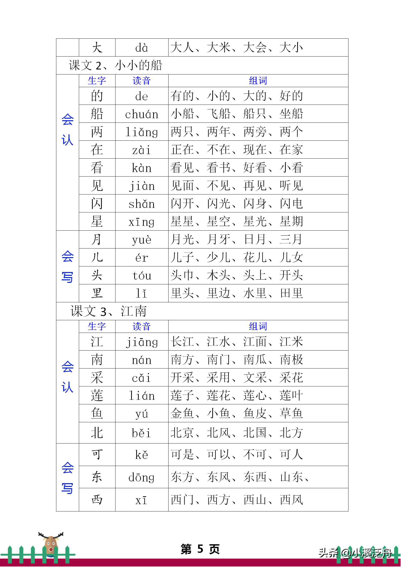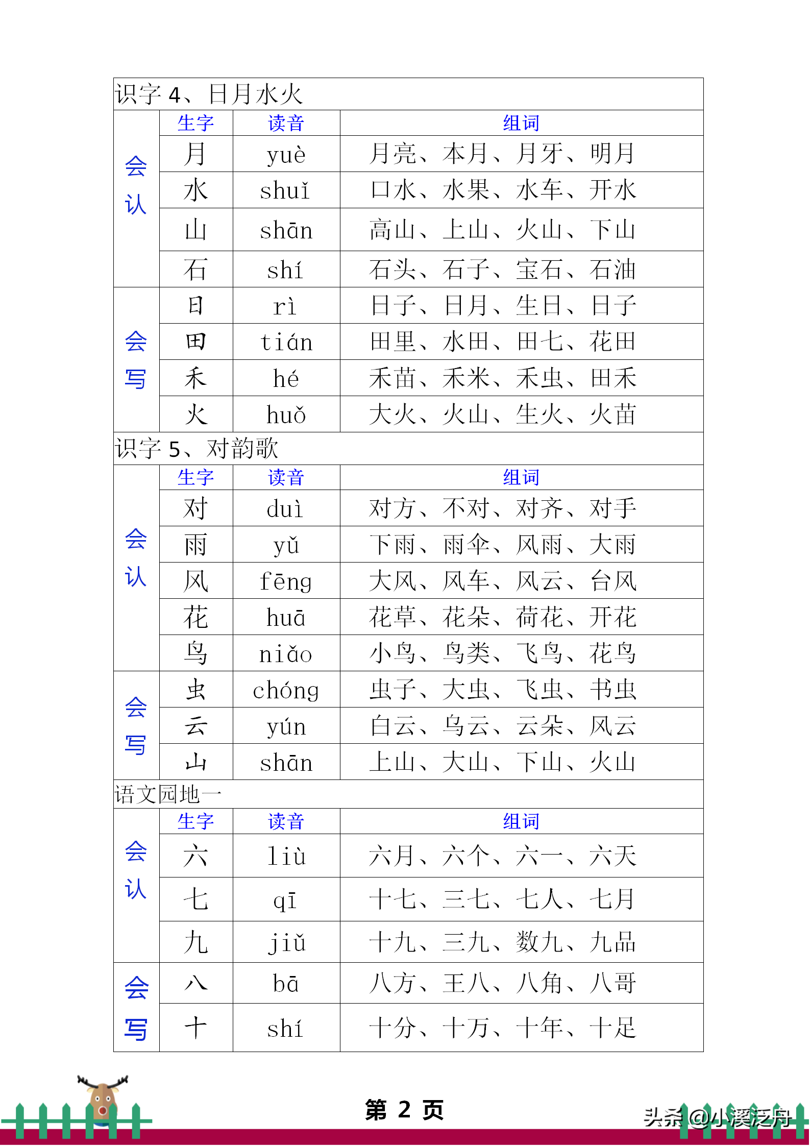 需要电子版的朋友,请加关注并私信我“一上生字组词”即可。
