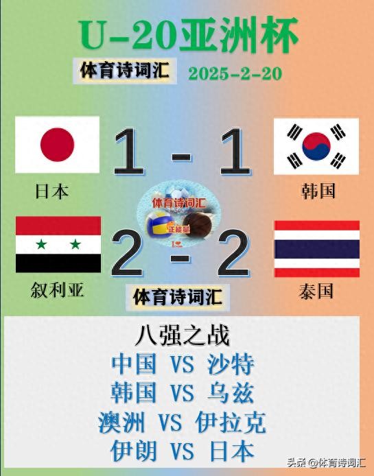 U-20亚洲杯:日本1-1韩国,叙利亚2-2泰国,国少国青国足三战沙特