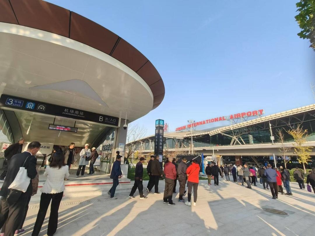 当日,记者来到了济南西站地铁站,感受了一把“123”——在槐荫“坐”着地铁上飞机的体验。