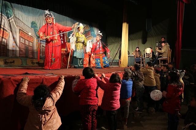 枣梆戏发源于梁山县拳铺镇方庙村,是市级非物质文化遗产,属于古运河文化的产物。绪初年,山西有个上党梆子“十万班”来鲁西南地区演出,历时一年之久,鲁西南地区会喜欢唱戏的人纷纷到“十万班”,拜师学艺深造。接着,从河北临铭关来唱“泽州调”的演员与鲁西南老艺人们又经过多年的探讨、研究,发掘了流传在皇宫的曲子和民间小调融合在唱腔里面,形成了一个比较完美的、别具一格的剧种。到了清朝末年,枣梆戏已发展到了河南的濮阳、河北的邯郸、山东鲁西南地区。枣梆戏,具有浓郁的乡土色彩和地方风格,她既有上党梆子的特色,又有皇宫的曲调,所上演的剧目由老艺人口传下来的有100多回,大多取材于民间演义小说,如歌颂忠臣的《天波楼》,也有行侠仗义的《水浒》戏,如《李逵坐县衙》、《时迁打铁》、《宋江杀惜》、《潘金莲坐楼》等。在艺术方面,枣梆戏家底雄厚,角色行当齐全,分工严格,表演程式完整,具有独特风格。该组图片拍摄于2014年,每年进入冬季梁山枣梆剧团就开始辗转各地演出。(李继保 摄)