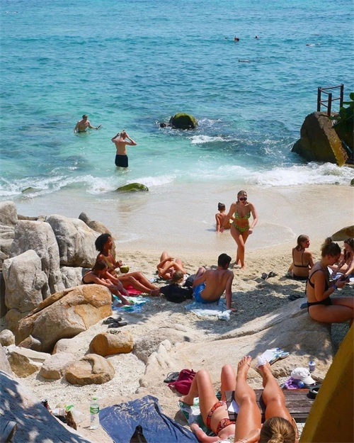 正因为如此,这里据说是世界上考潜水证人数最多的地方,岛上聚集了全世界的潜水爱好者,也是专业潜水的训练基地。龟岛的酒店、潜水学校和潜水设备商店等集中在西侧和南侧海岸。西侧的赛丽海滩最大,也是龟岛最漂亮的海滩。西侧的湄哈镇是岛上最热闹的地方,其中湄哈码头也是进出岛的码头。