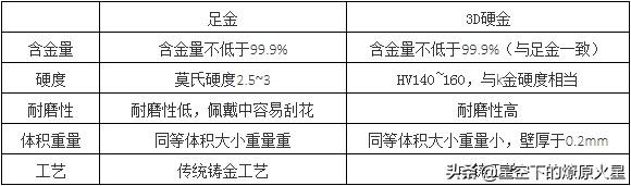 3D硬金全名称为3D千足金,千足金上一篇《K金中的“K”是什么意思?和黄金、足金有什么区别? 》之中有详细解答过3D金本质上属于千足金的一种。