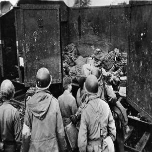盟军部队在一辆没有到达最终目的地的火车上发现了大屠杀的受害者