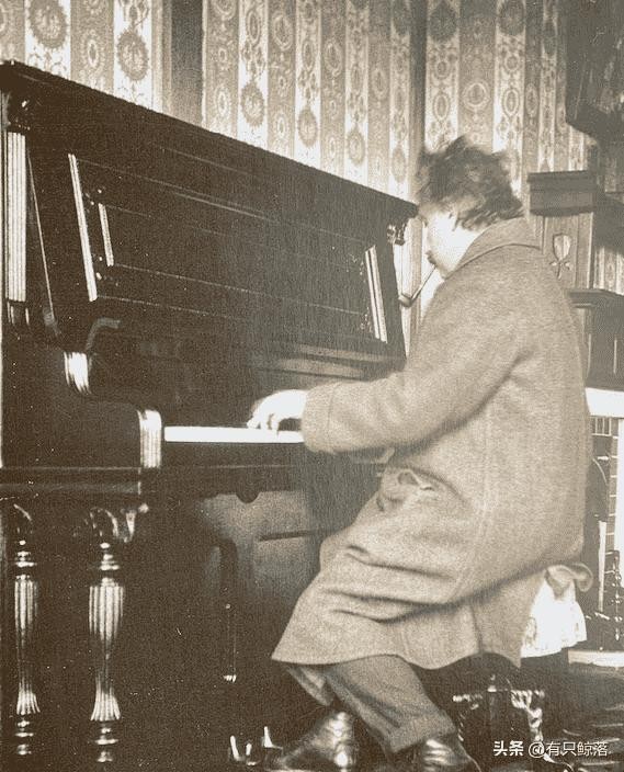 [1922 年 12 月 17 日] 阿尔伯特·爱因斯坦在访问日本期间弹奏钢琴。他也是一位优秀的小提琴家