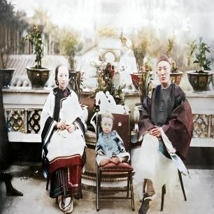 通过三人身上的穿着打扮以及家中的摆设,可以看得出这是一个富贵的人家。