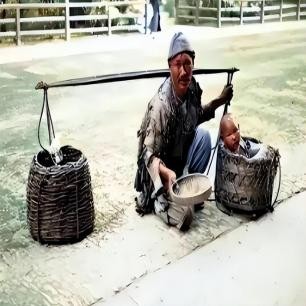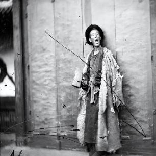 晚晴时候的乞丐,旁边筐子里的是他的小孙子