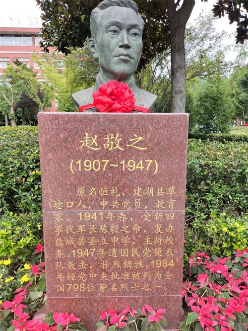 曾在盐城县县立中学主持校务的革命烈士赵敬之雕像
