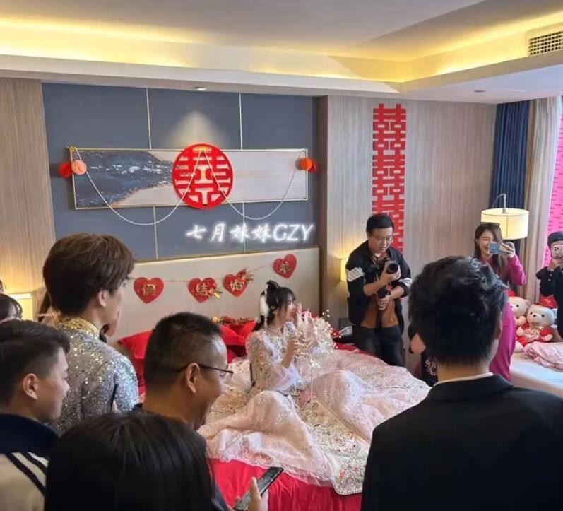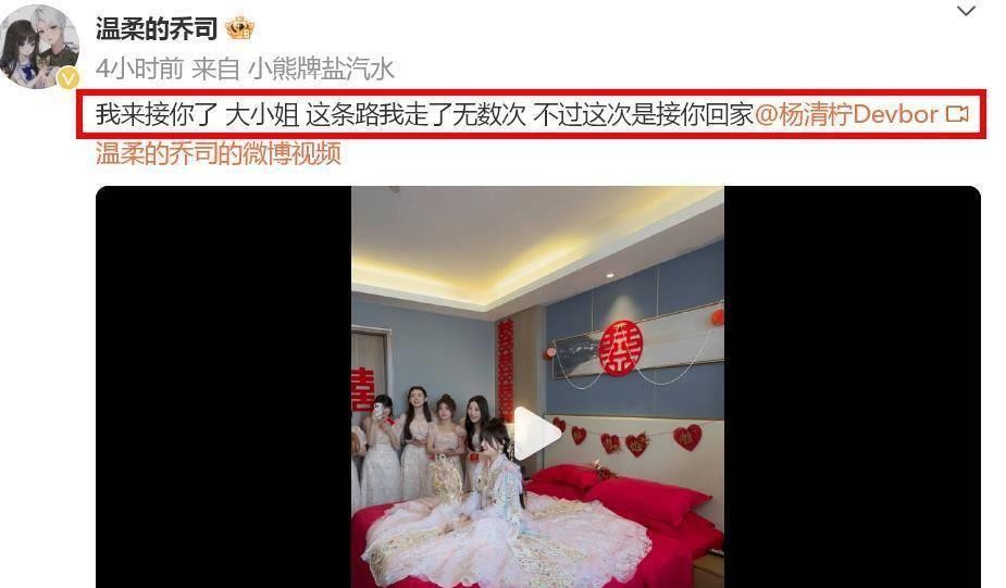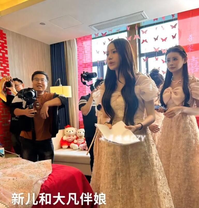 在简单的布置中,可以看到床头和墙壁贴满了囍字,新娘杨清柠身着中式绣服,伴娘团的阵容也十分精彩。最令人惊叹的是酒店外停着的十几辆豪车,其中不乏劳斯莱斯等名车,想必这些车子的花费已经不低。为了筹备这场婚礼,杨清柠和乔司花费了不少心思。