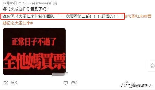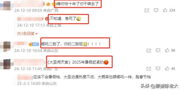 而它在更新微博后,也引来了很多网友的关注,大家纷纷在下面评论,想知道《大圣归来》的第二部到底什么时候才能上映。