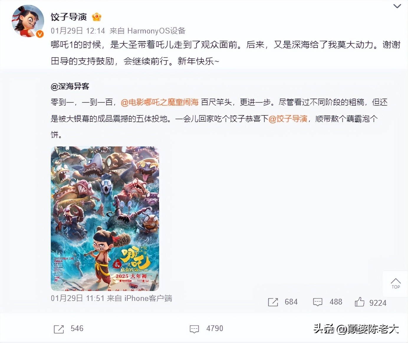 此外,电影官方之间的惺惺相惜也打动了不少的人,饺子导演曾说哪吒最开始是由大圣带着走到观众面前的。
