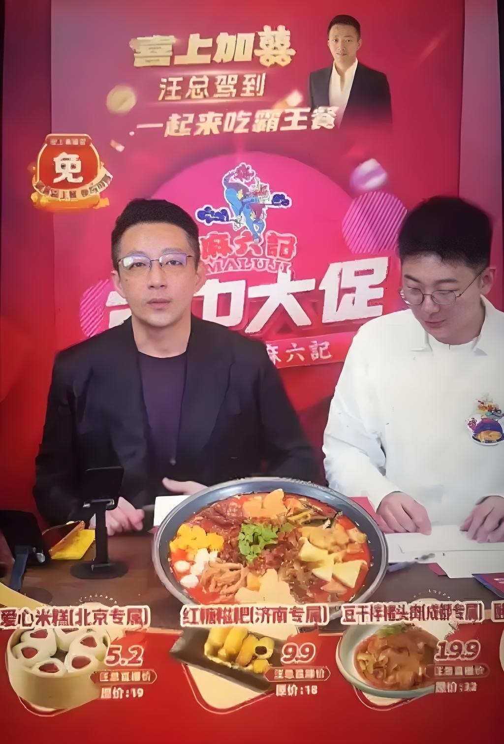 5月20日,汪小菲出现在麻六记直播间,精神满满的介绍产品。