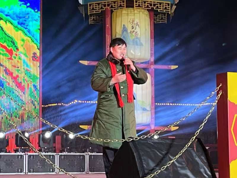 2月12日元宵节,朱之文在鄂尔多斯伊金霍洛旗的元宵节晚会唱歌。受访者供图