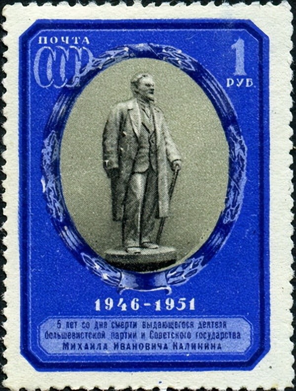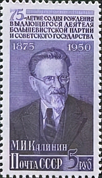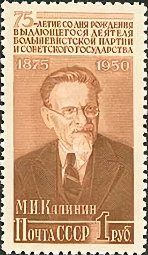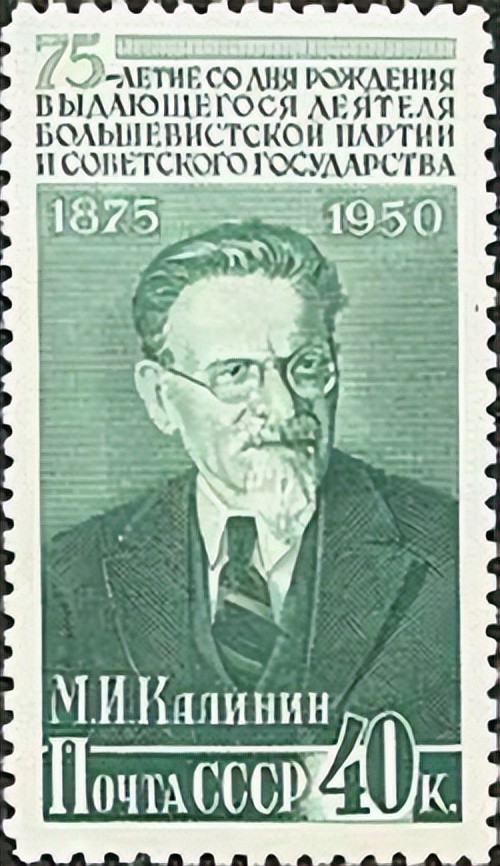 1950年,苏联邮政发行的加里宁纪念邮票,一套三张(三种面值)
