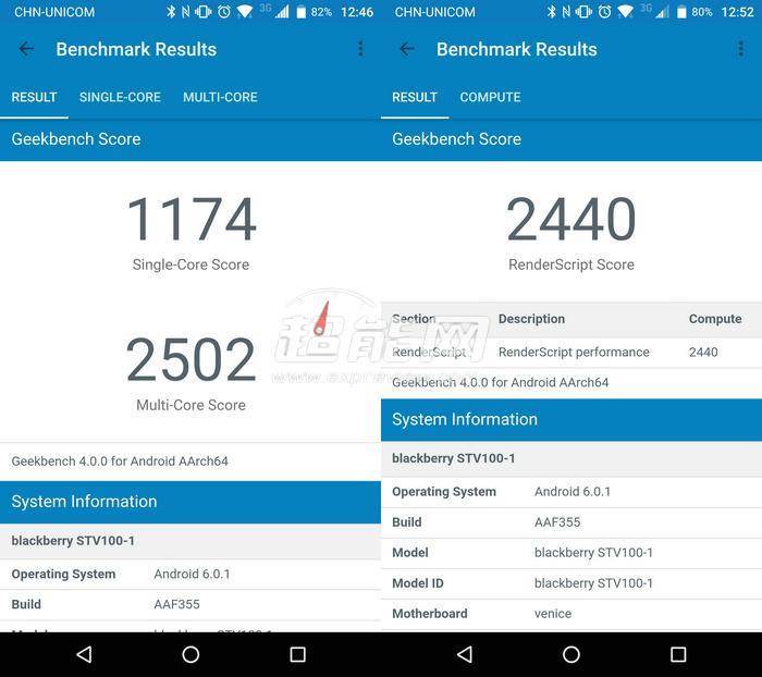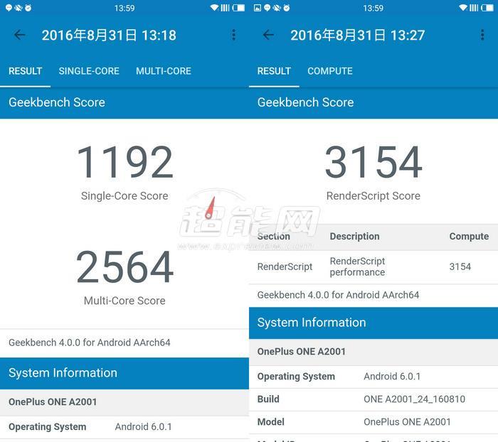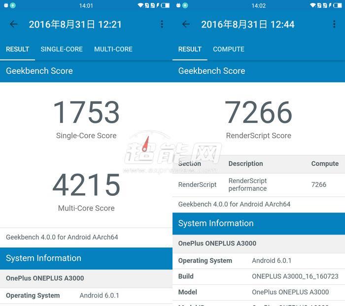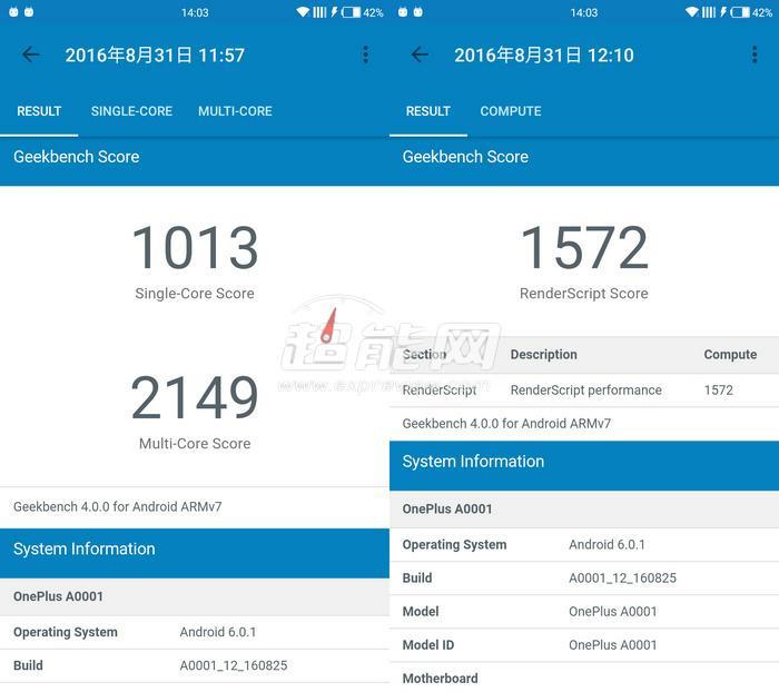 一加手机3,骁龙820,左为CPU成绩,右为COMPUTE成绩,下同