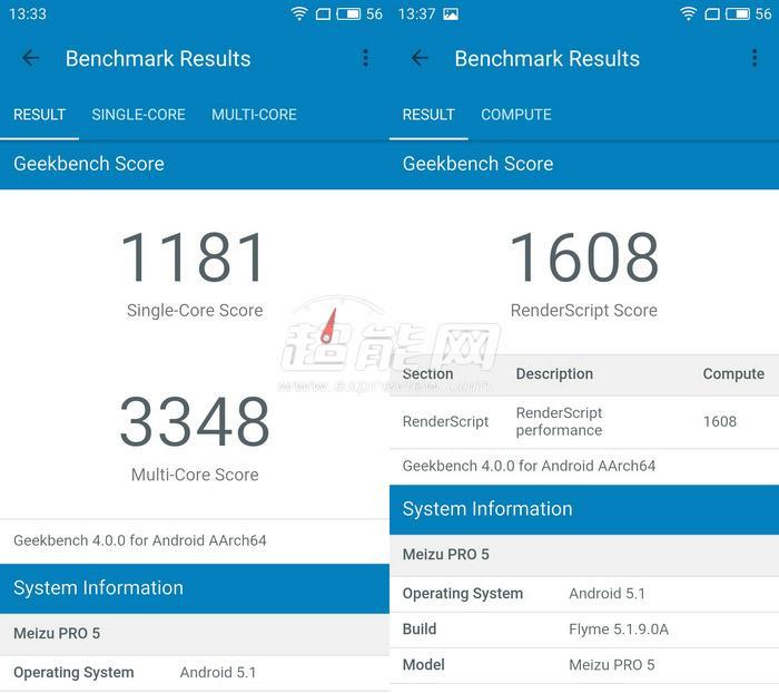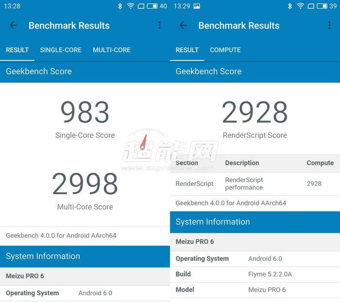 魅族两代旗舰PRO 5、PRO 6上,前者在均衡模式下成绩一般,但开启鸡血模式,可以跑到1400多分单核,COMPUTE成绩也有提升。至于用MTK的PRO 6...大家看看就好。