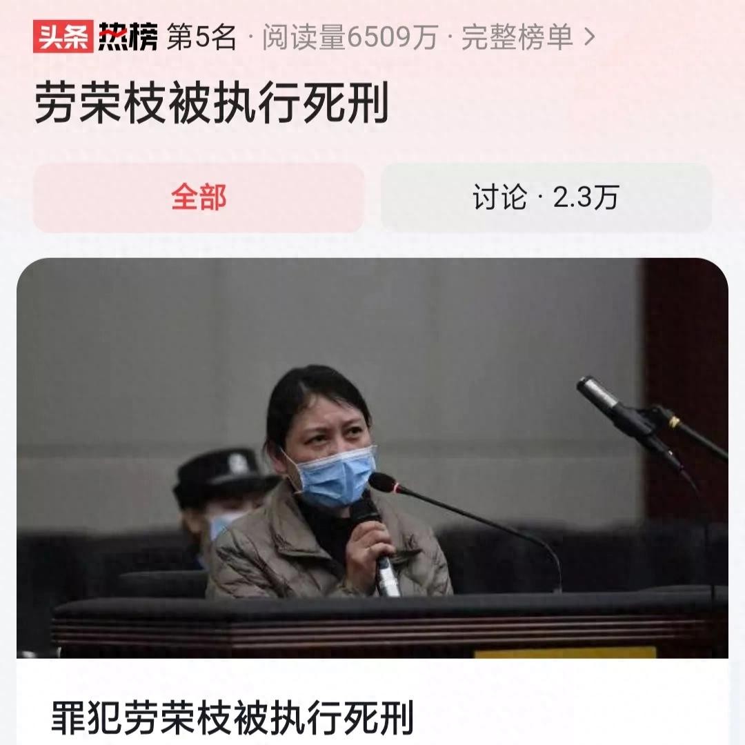 12月18日上午,江西省南昌市中级人民法院遵照最高人民法院下达的执行死刑命令,对劳荣枝执行了死刑。