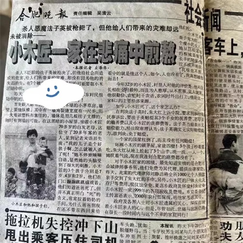 当时,合肥晚报曾经报道过小木匠被害后,其家属所遭受的苦难,所承受的巨大悲痛。