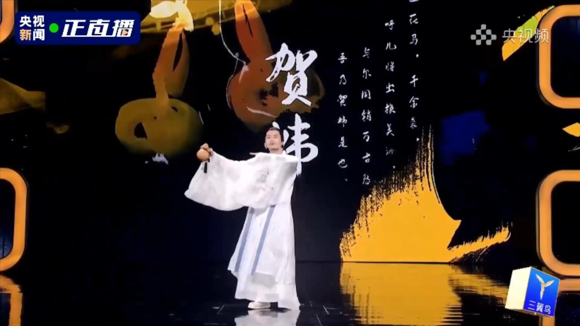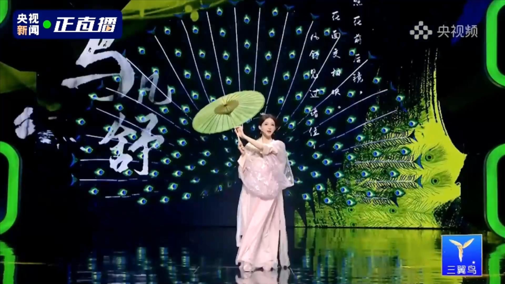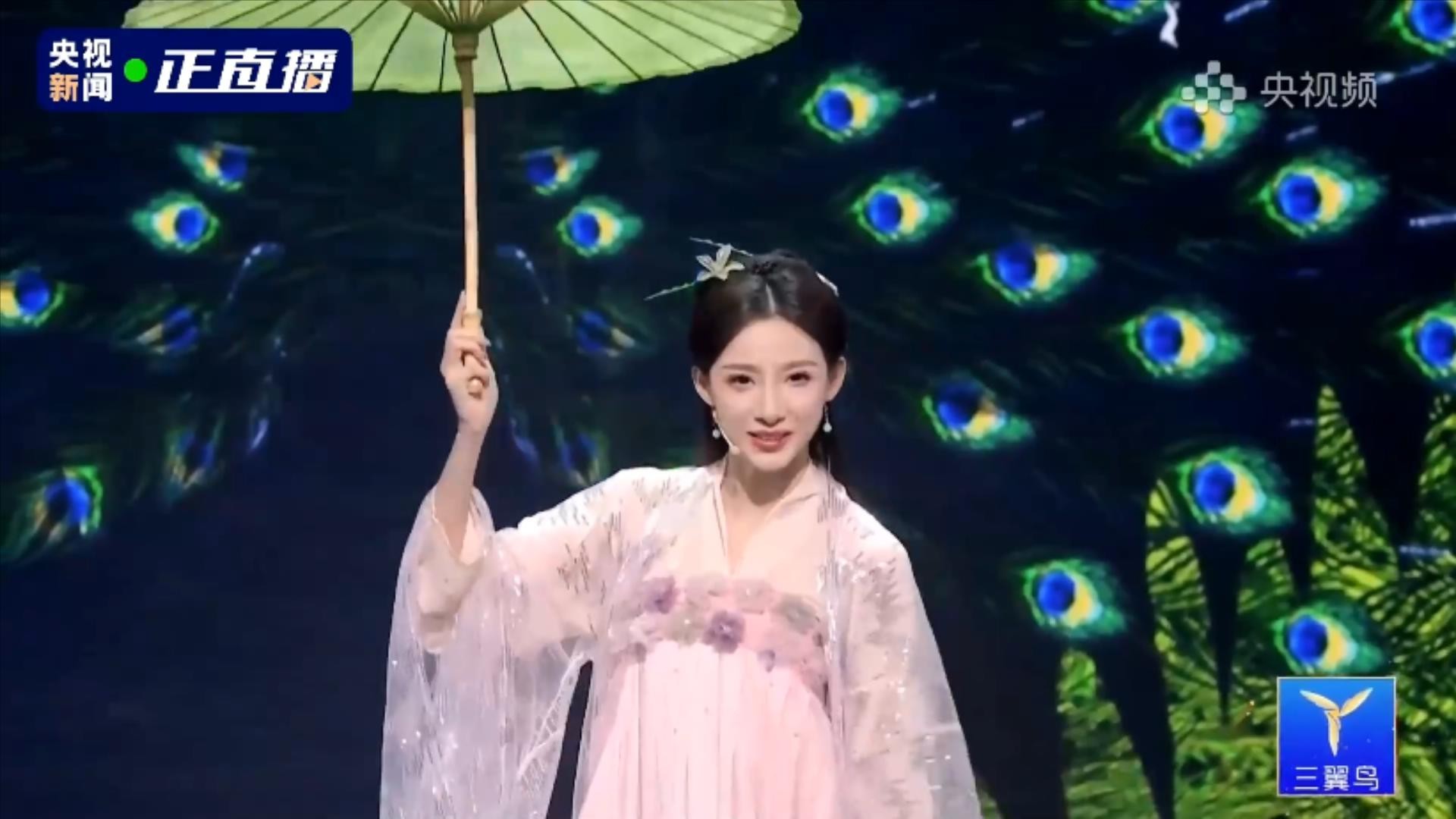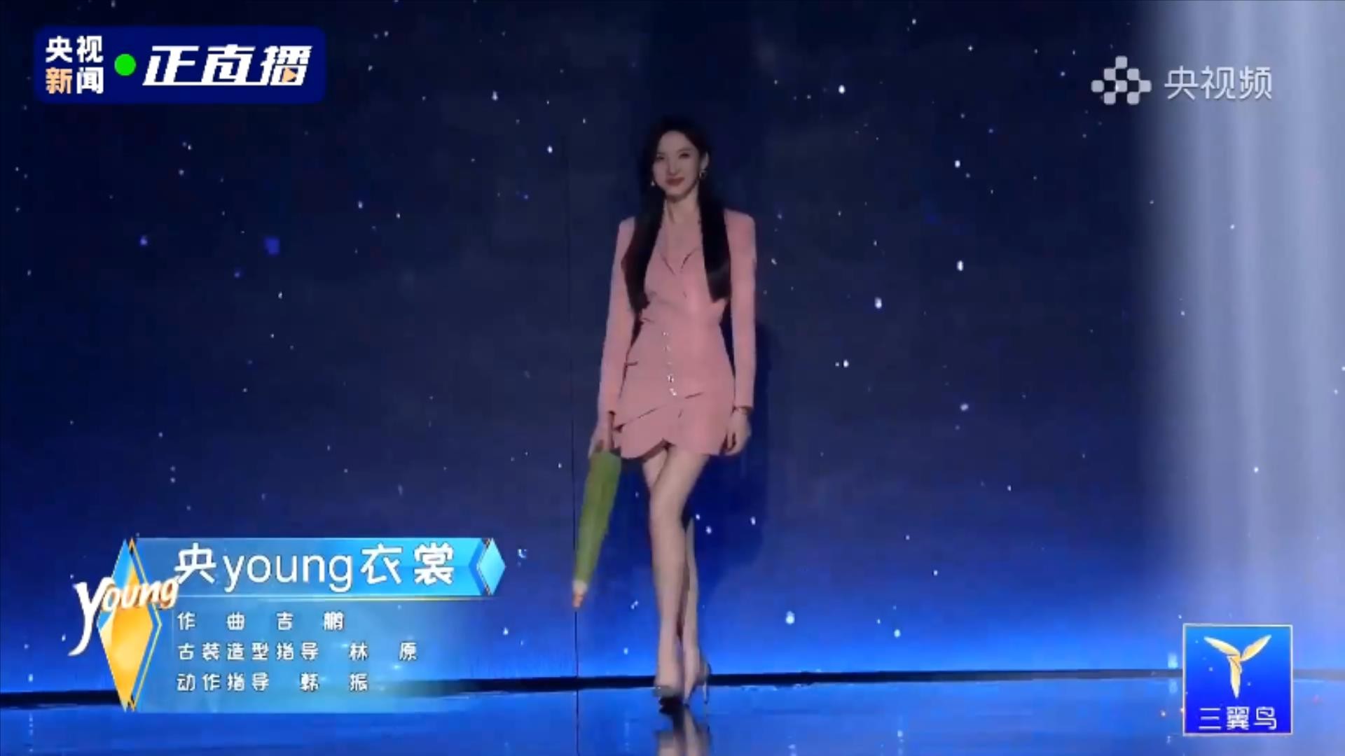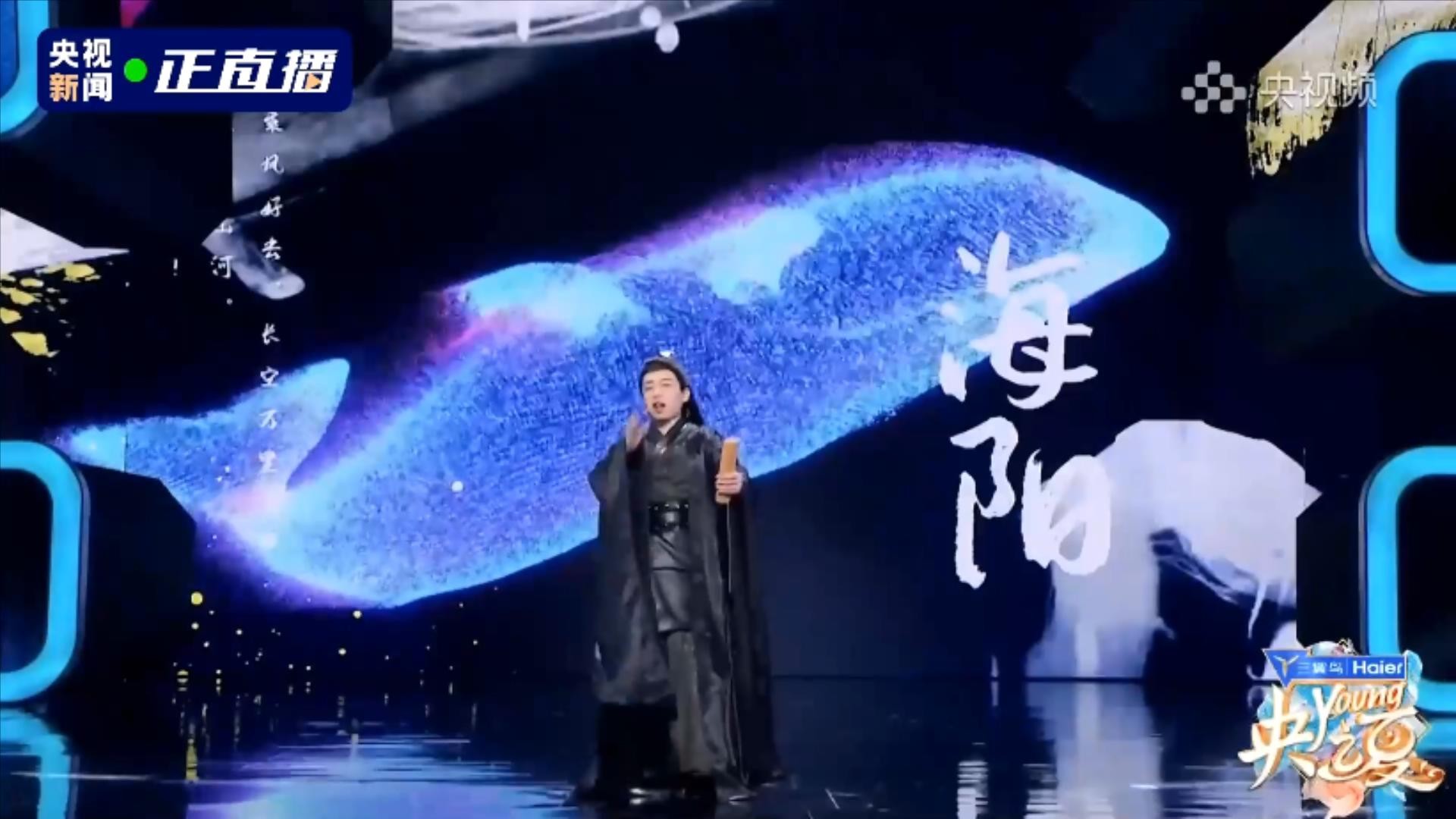 第四位出场的央视主持人,是绿泡泡,他拿了一把剑。