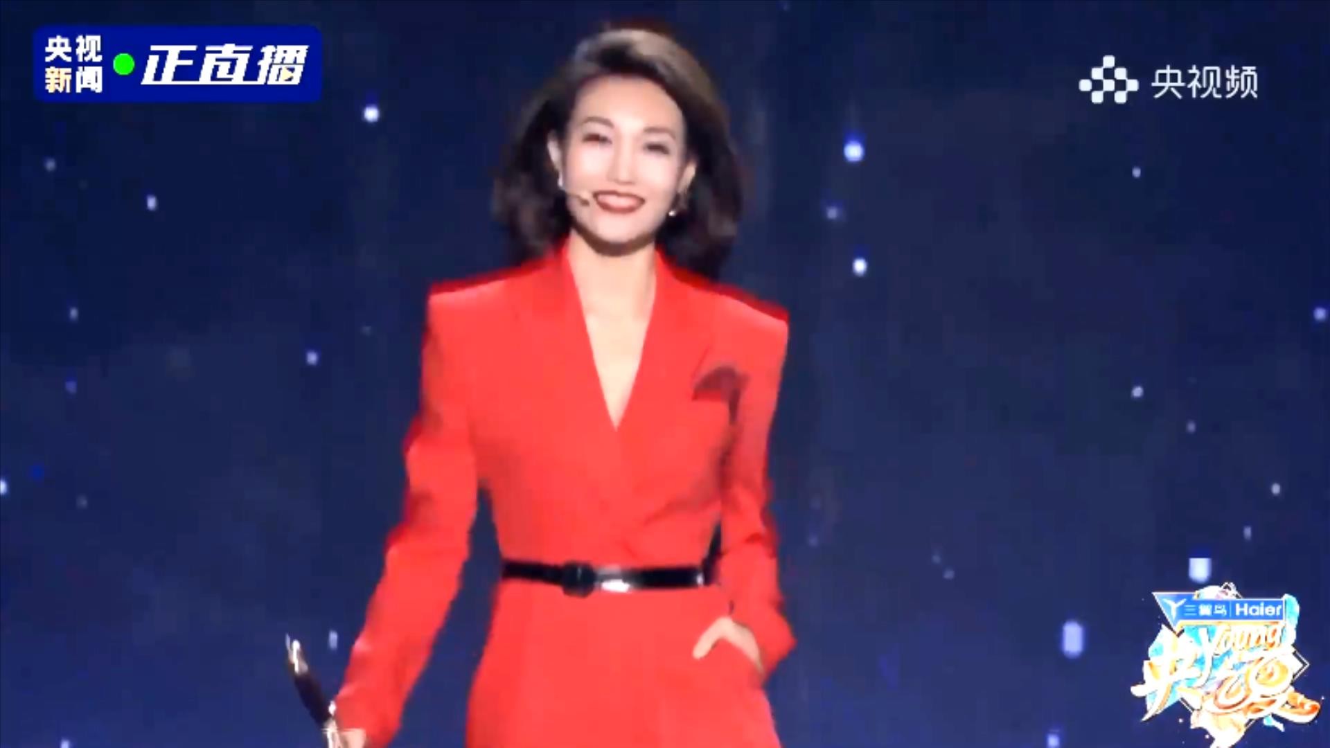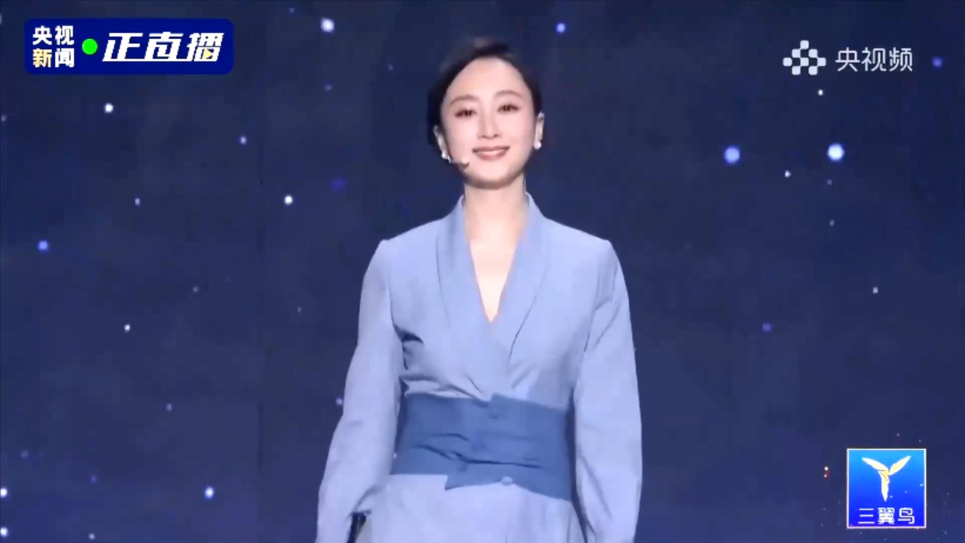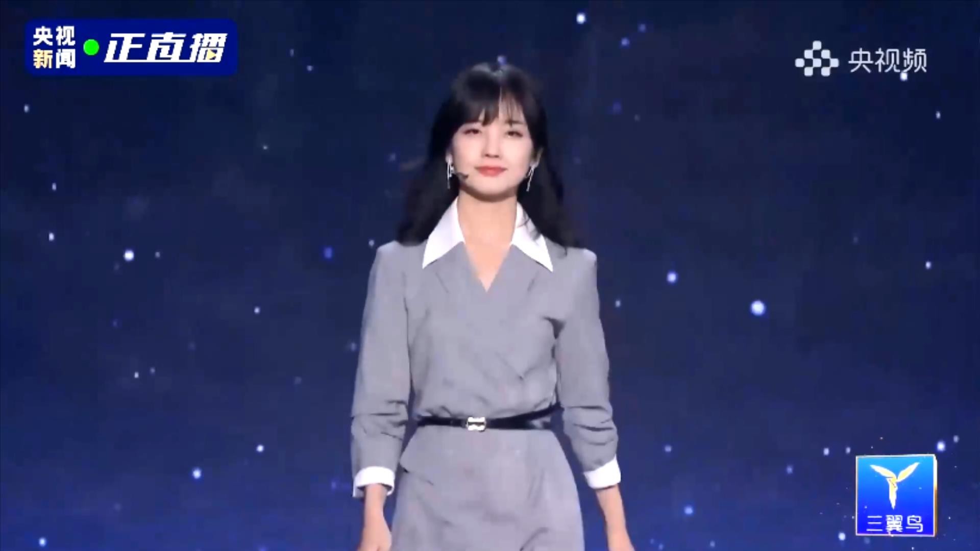 第三位出场的央视主持人是月亮姐姐,月亮姐姐是少儿节目主持人,这次的现代装很有一点女强人的感觉。