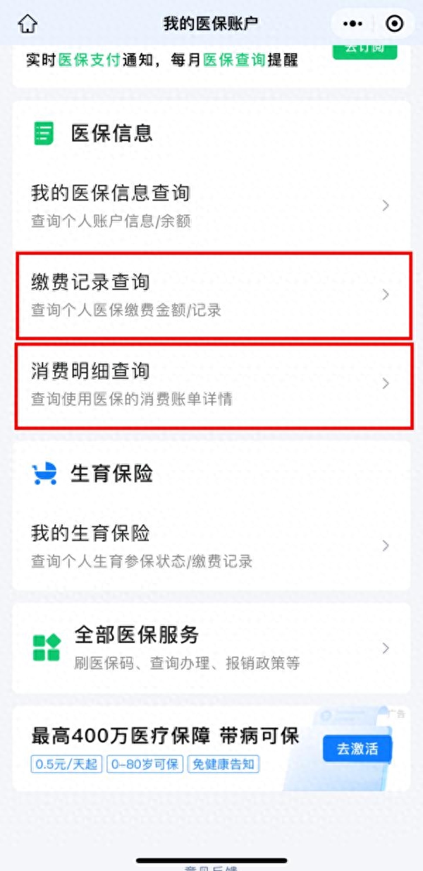 ● 点击“我的医保账户”-点击“消费明细查询”-选择年份,即可查看往期医保消费账单详情;