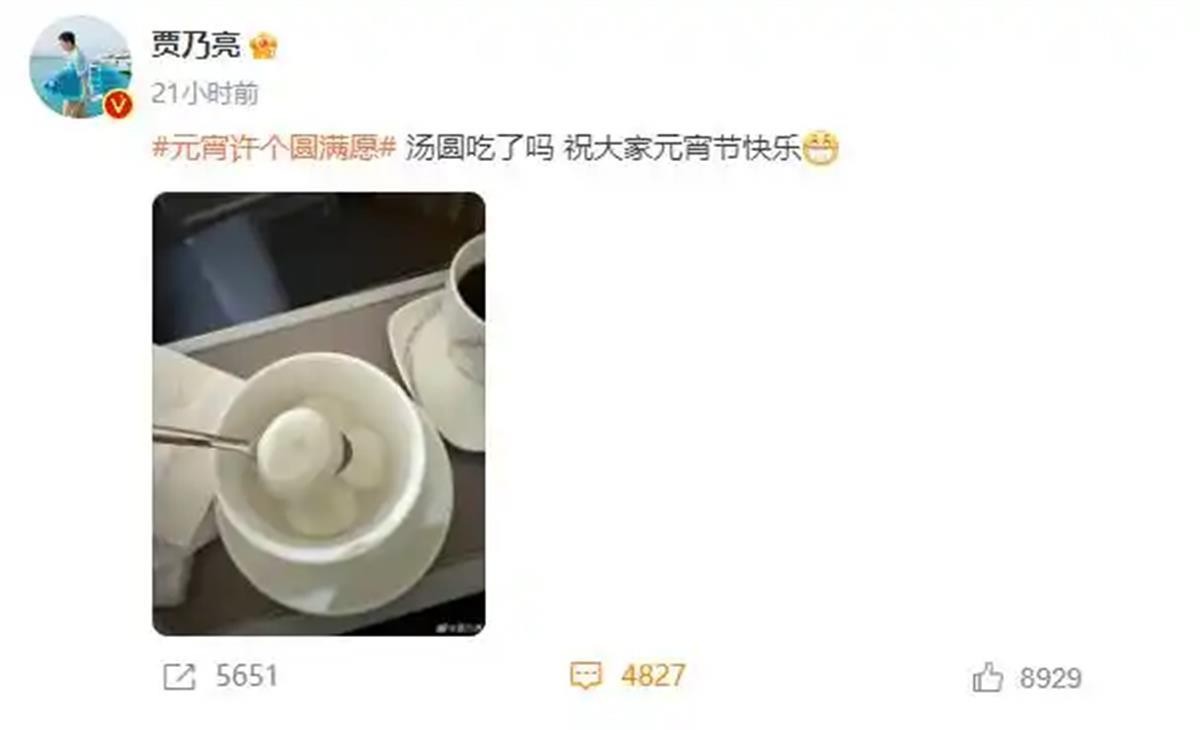 2月12日,贾乃亮社交账号曾更新元宵推文。13日下午,再次更新账号,及时回应“去世”的谣言。