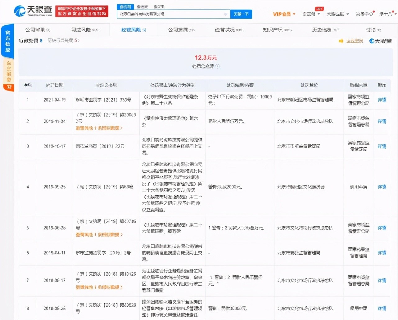 值得注意的是,北京口袋时尚科技有限公司已有多条行政处罚,处罚事由包括向无证无照经营者提供出版物发行网络交易平台服务等。