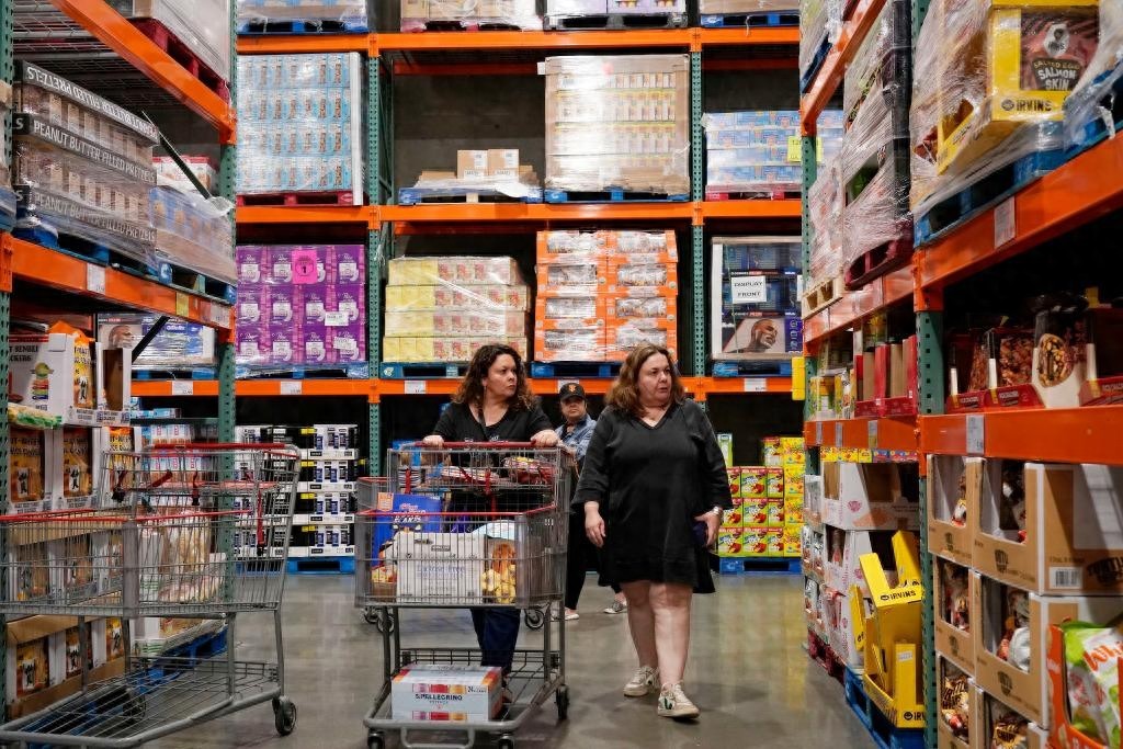 2024年2月28日,顾客在美国加利福尼亚州福斯特城一家超市购物。新华社发,李建国摄