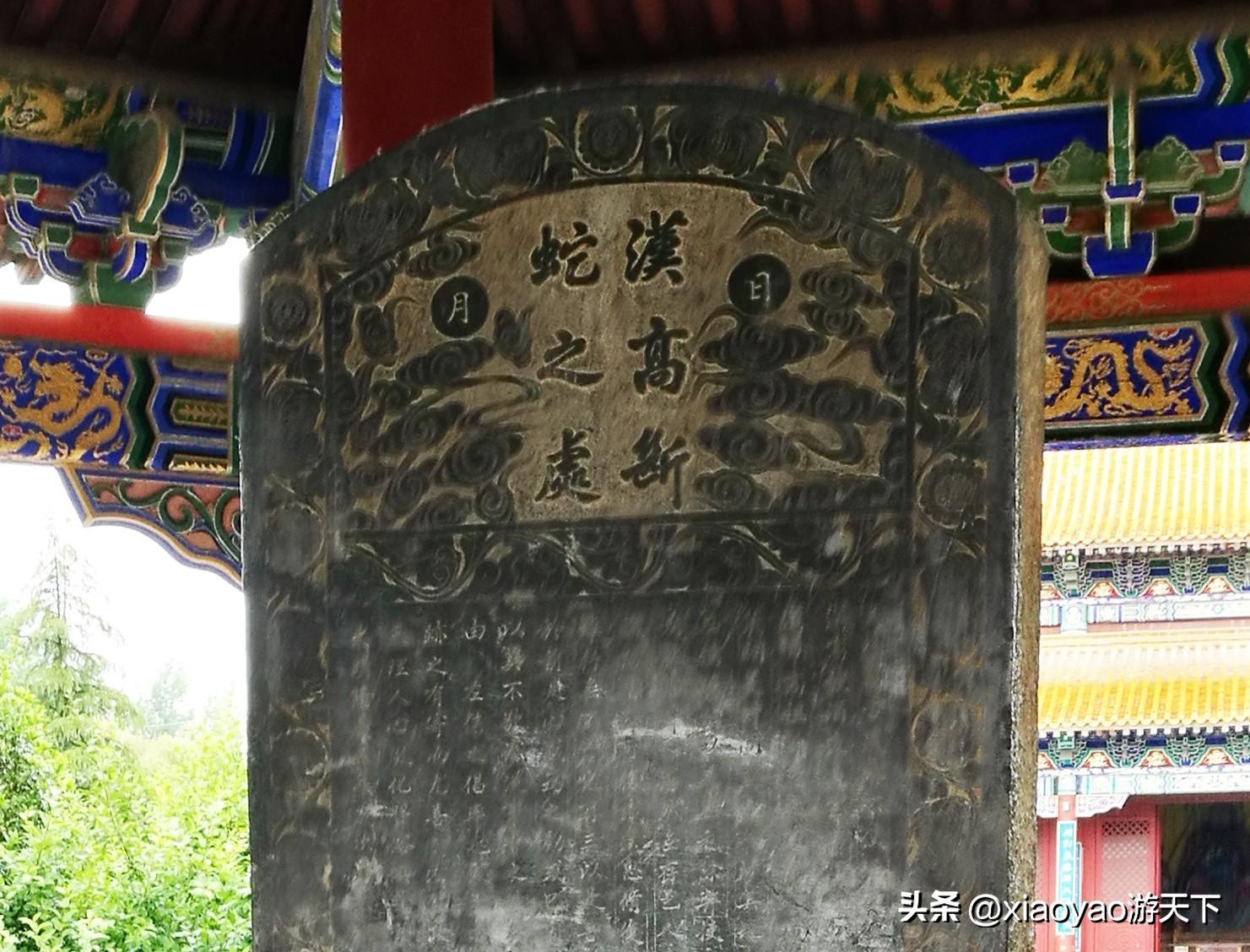 汉文帝时期,为了纪念高祖刘邦斩蛇起义反秦,汉文帝下令在芒砀山刘邦斩蛇处立碑建庙。在两千多年的时光中斩蛇碑和高祖庙屡经损毁,明隆庆五年(1571年)时又在芒砀山刻立了一通石碑,上面刻有“汉高断蛇之处”,碑文则详细记载了汉高祖刘邦在芒砀山斩蛇起义的经过以及后世立庙祭祀的经历。现在的刘邦斩蛇碑则是上世纪80年代复制的一块石碑,明代石碑则被珍藏在了芒山文化馆。