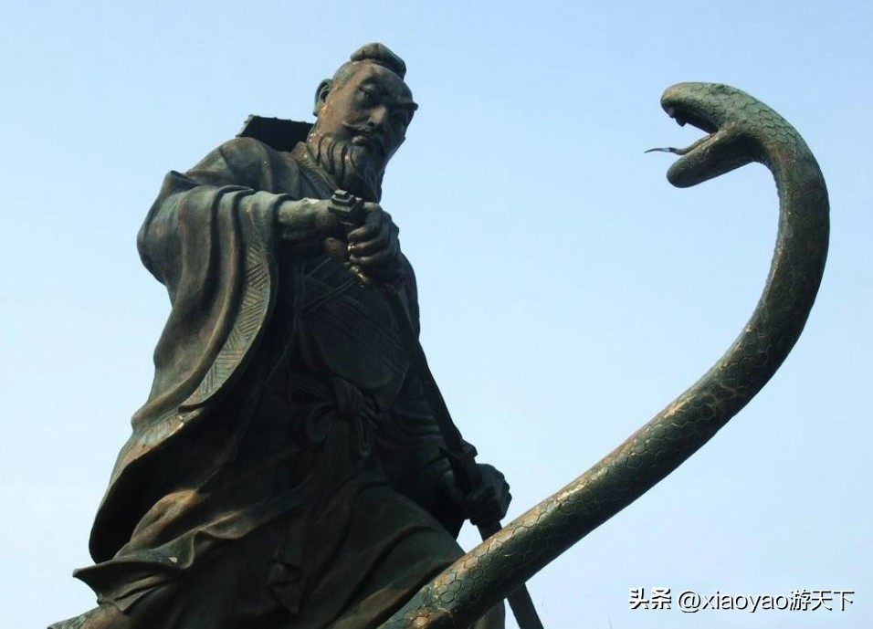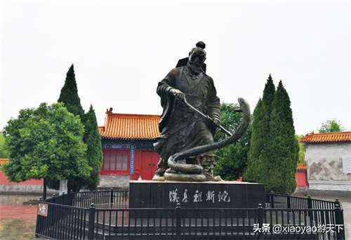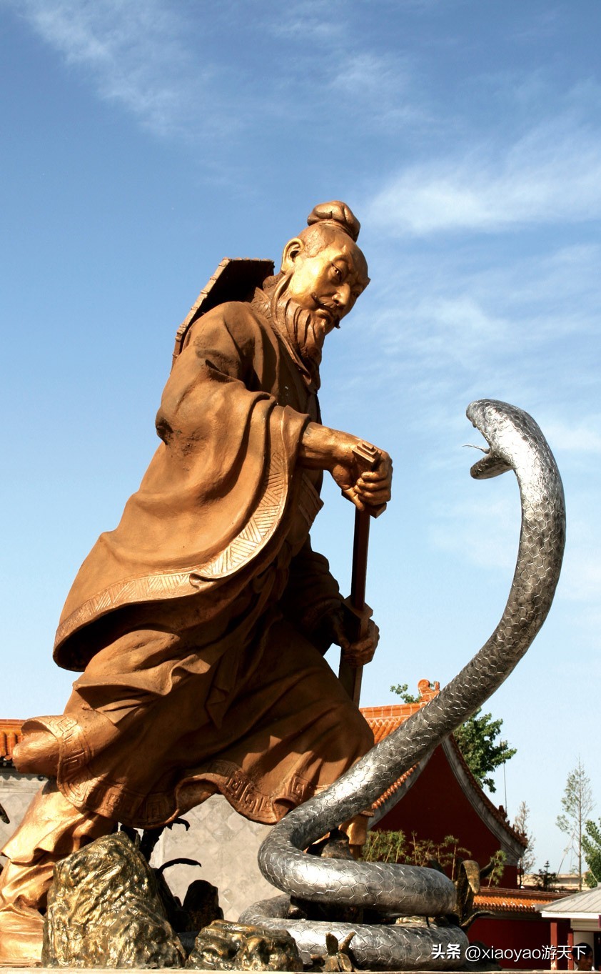 两千二百多年前的一天,身为泗水亭长的刘邦押送着一批刑徒到骊山修建秦始皇陵。为了活命,这批刑徒在路上很多都逃走了,走到丰邑西芒砀山中的一片水泽时,喜欢喝酒的刘邦停下来饮酒,并且将这批刑徒全部放走。到了晚上,宿醉的刘邦来到水泽边,看到有一条蟒蛇挡道,于是拔剑斩杀了这条蟒蛇。这就是刘邦斩蛇起义的故事,被司马迁记载到了《史记﹒高祖本纪》中。
