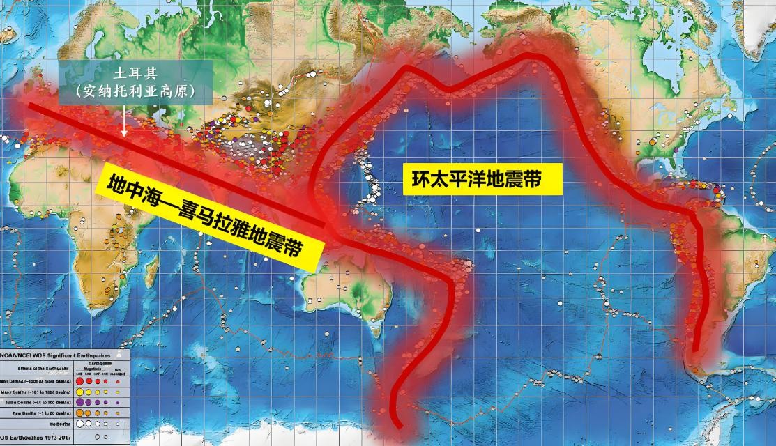 目前世界上主要分为三个频繁发生地震的“地震带”,环太平洋地震带(占80%)、各大洋洋中脊的洋中脊地震带、从地中海一路向东延伸至喜马拉雅山区和印尼的欧亚地震带。