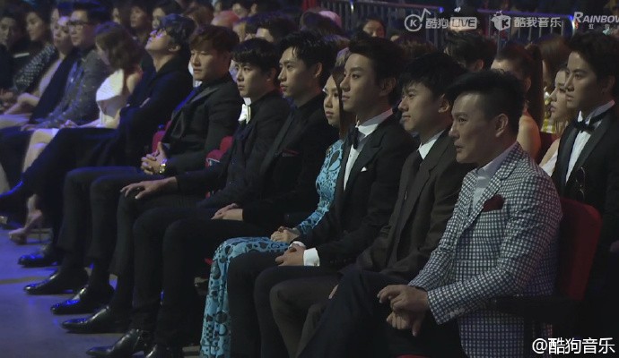 注意,两人原本的位置不在一起的哦~~主办方不知道是为了两人面子装傻,还是真的不通人情世故呢,非把魏晨和黄致列安在邓紫棋身旁,金钟国和黄致列两个老乡还隔得老远。