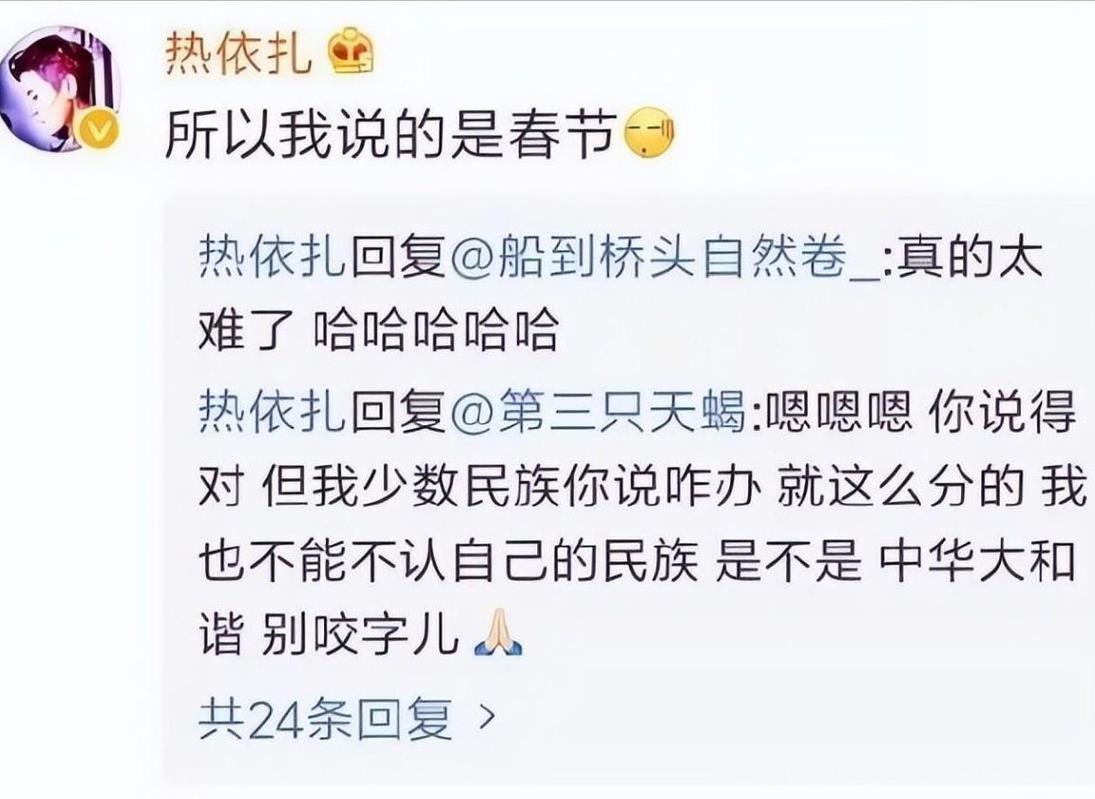 比如热依扎曾经在社交平台上说少数民族不过春节,之后和网友争论起来这一件事,就让许多人不满。