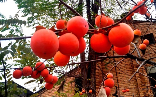 柿子就像是秋天的使者,用它火红的色泽,用它吉祥的寓意,给这清冷的季节增添些许暖意。