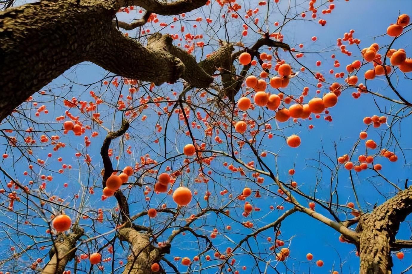 田垄山间、房前屋后,如霞似火的柿子树随处可见,如灯笼般挂满枝头,丰硕而不妖娆,殷实而沉淀,惊艳着最朴实的深秋。