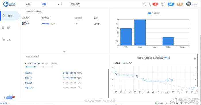 随着工作的推进,项目成员完成任务,甘特图就会自动计算项目进度。