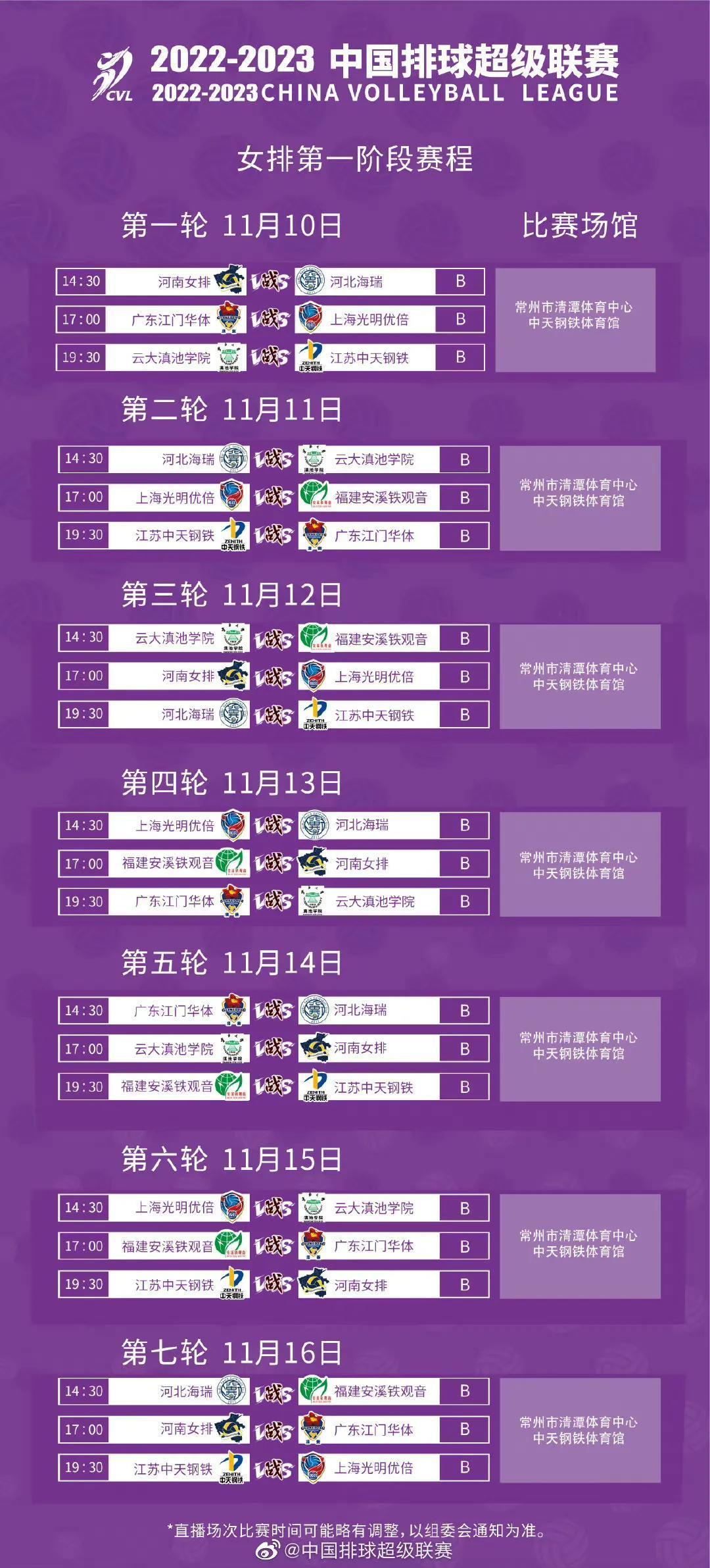 地主的比赛将于11月10日在江苏省常州市举行,揭幕战将在下午两点半在河南女排和河北女排之间进行。