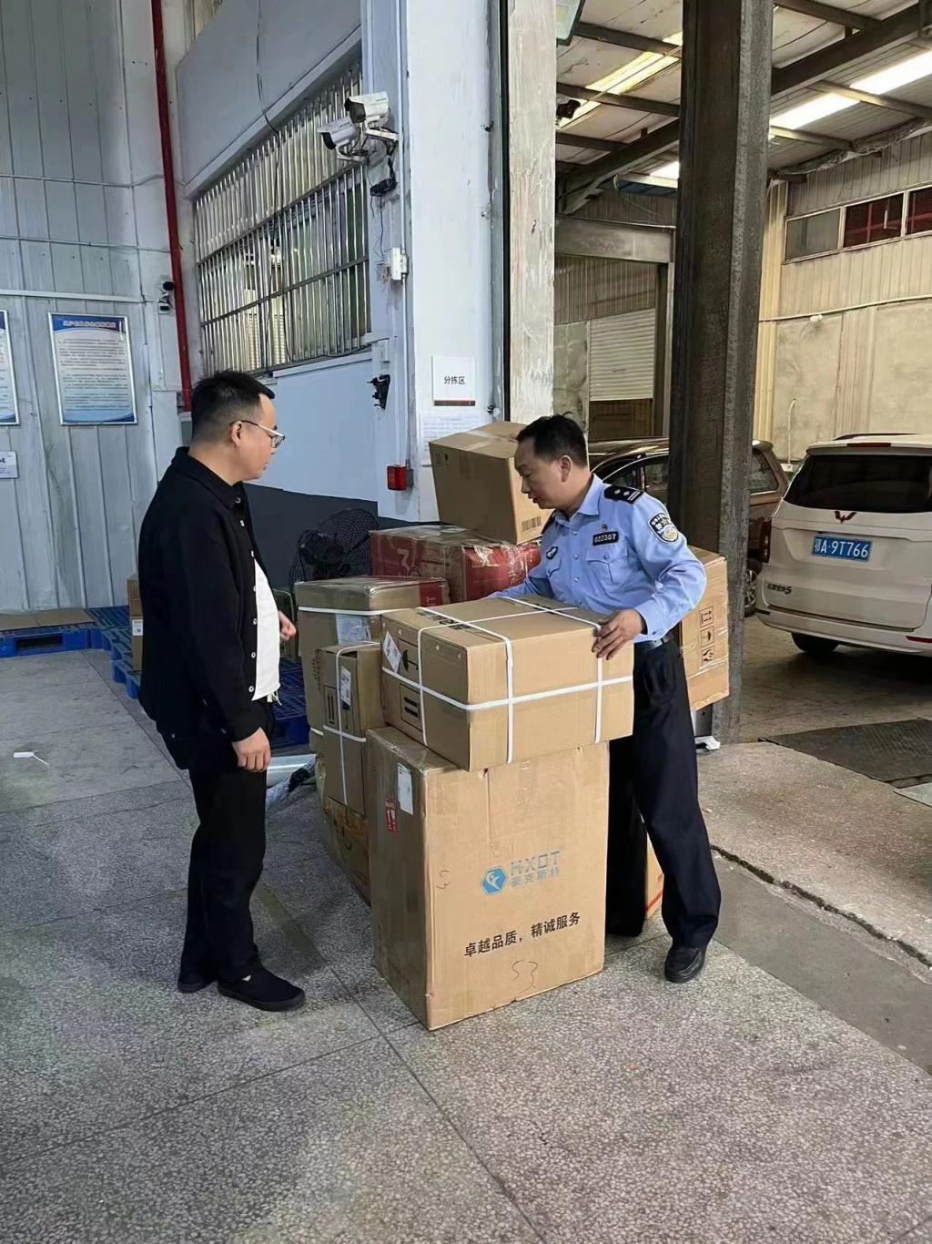 张文昌(右一)在翻找快递