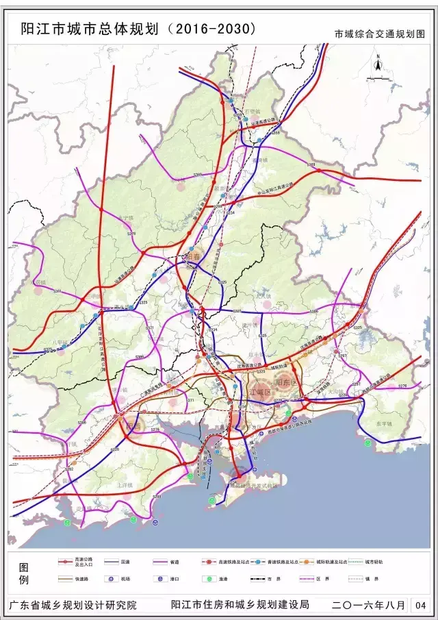 昨天(2016年9月5日),阳江市住房和城乡规划建设局公示了《阳江市城市总体规划2016-2030》的市域综合交通规划图。红色虚线属于高铁线路,大家赶快在下图找下广湛客运专线吧!