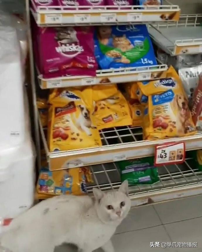 聪明的流浪猫会在人群中找到一个比较顺眼的目标,然后跟着他来到超市里面。