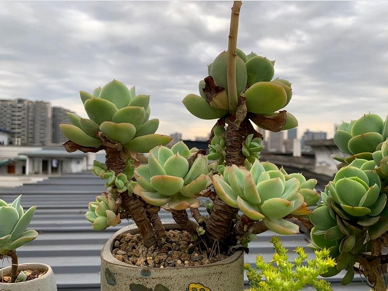 那么,控水的话,现在也不是一点水都不给的,要结合你家的气候、温湿度、多肉的生长状态等情况来进行调整的。