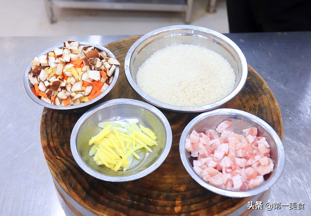 准备里脊肉500克,先切成片再切成肉粒,猪肉不用太多,主要是为了提味。