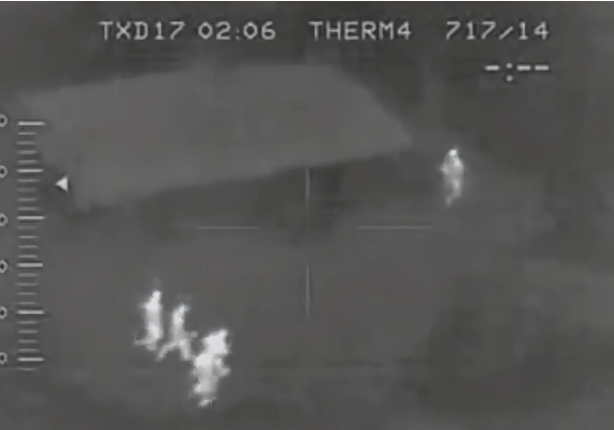 首先,我们从视频里可以发现,这大概是一架军用直升机,因为一般的直升机不会装备热成像摄影机的。