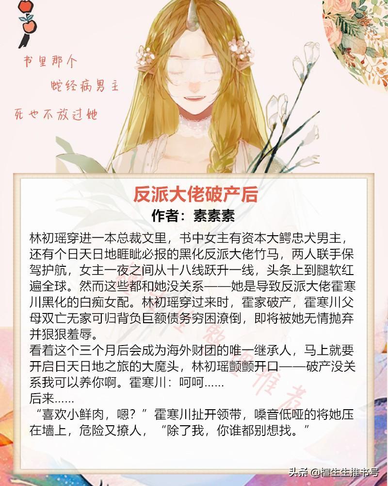 亲们,今天来推一些新的穿书文吧,今天主打蛇精病男主系列,暗黑系男主、偏执狂男主、病娇男主、他们隐藏在阴暗的角落紧紧地锁定女主——她又娇又软,以后就是他的了!