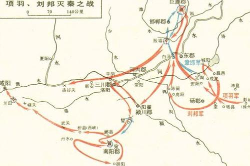 秦二世三年(公元前207年)十二月,项羽、刘邦灭秦之战中,项羽在巨鹿(今河北平乡西南之平乡镇)城下,进行了歼灭秦军主力的一次战略决战。