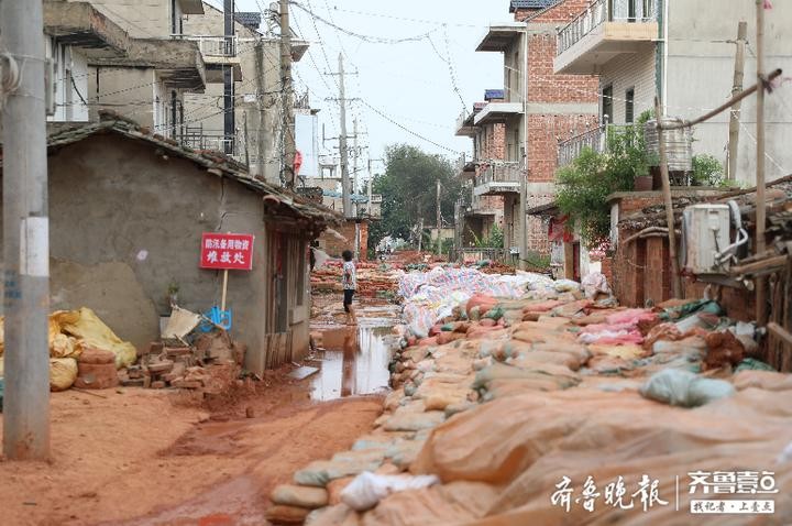 “洪水喷涌出来,冲出来几十米远,像电视里看到的泄洪一样,村里四处进水。”陈光明一家逃跑时,水已经漫上了他家院子,“水势很急,没办法了,我就带着老婆孩子开始跑。”陈光明清楚地记得,决口时,当晚在此值守的鄱阳县城管队员跑过他家对他大喊,“快跑,快跑,你想死啦。”