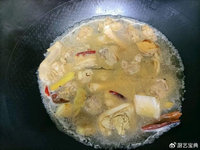 用油锅烧热,加入白砂糖。随着温度升高,糖开始起泡,我们的锅中充满了诱人的焦糖香气。然后,加入生姜、大蒜、八角、桂皮、香叶和干辣椒,这些香料的交织在一起,令人垂涎欲滴。