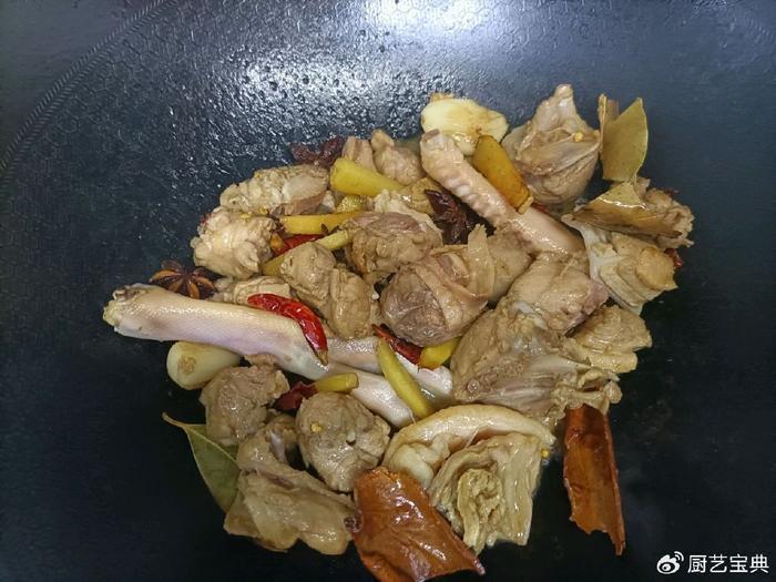 不断翻炒,直到鸭肉散发出微微金黄的色泽。这一步是为了让鸭肉炒干水分,保持肉质鲜嫩。