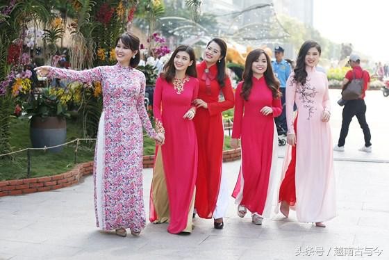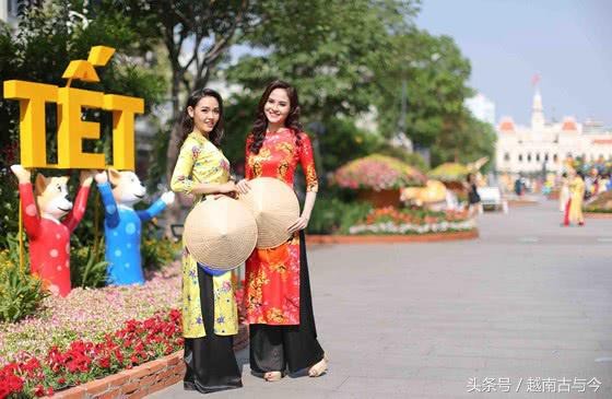 身穿美丽越南民族服饰奥黛的越南环球小姐柔贝伊和模特儿怀灵儿在阮惠花街漫步。整个花街持续到19日(即农历腊月廿八到正月初四)结束。
